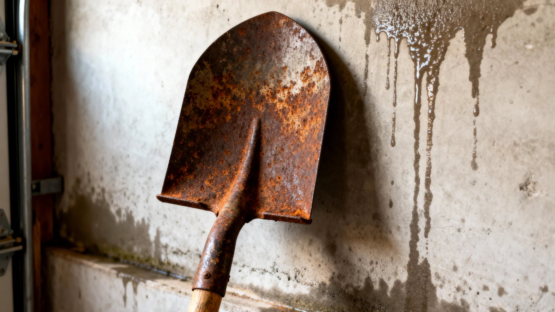 Ein Spaten unterliegt mehreren Umwelteinflüssen, die seine Funktion nach und nach schwächen. Feuchtigkeit ist der größte Feind. Selbst kleinste Mengen können über Wochen hinweg mikroskopisch durch den Lack dringen und Oxidationsprozesse im Metallblatt auslösen. Wenn der Spaten in einer feuchten Umgebung steht – etwa direkt auf dem Boden oder an einer unbeheizten Garagenwand – beginnt der Korrosionsprozess meist unbemerkt an der Unterkante.