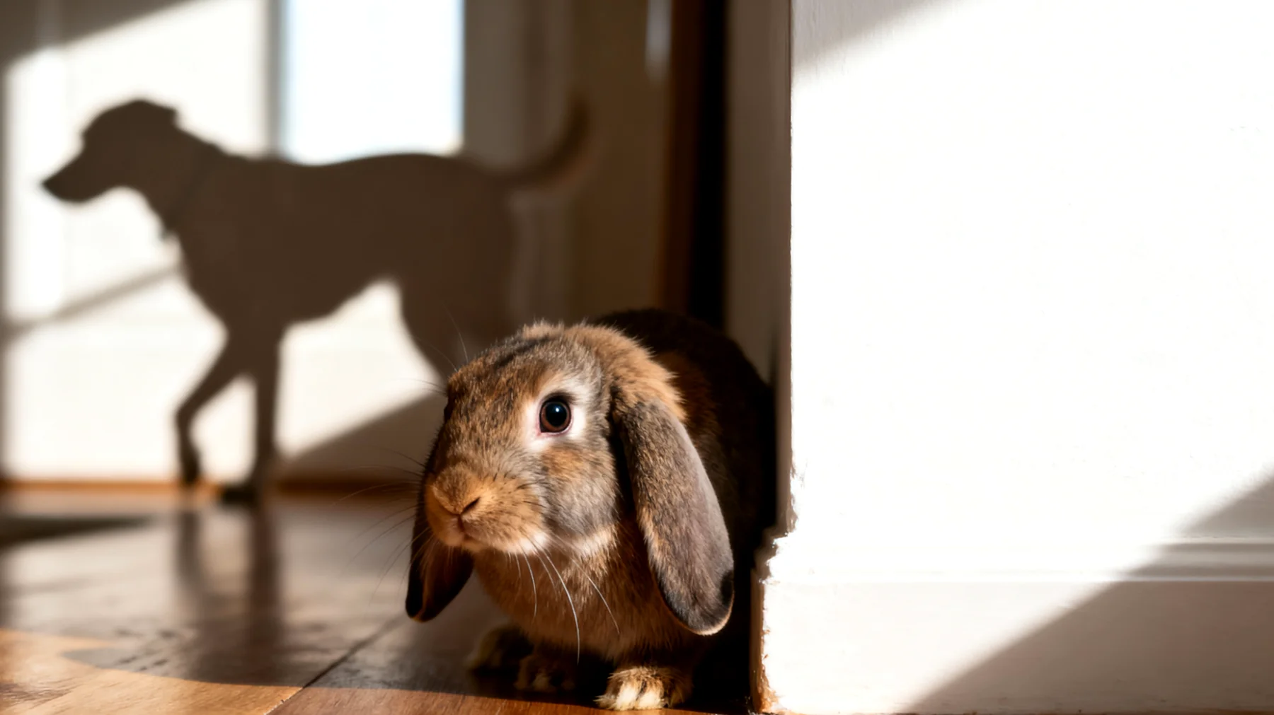 Kaninchen verfügen über äußerst feine Sinne. Selbst wenn kein direkter Kontakt zwischen Kaninchen und anderen Haustieren stattfindet, nehmen sie deren Anwesenheit wahr. Das Kratzen von Krallen auf dem Boden, Bewegungen oder ungewohnte Geräusche können bei sensiblen Tieren Fluchtreflexe auslösen.