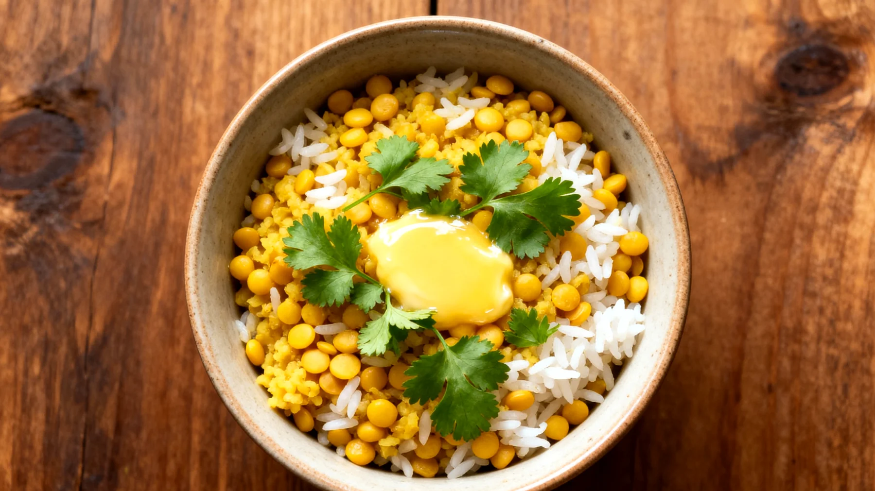 Die Mungbohnen bringen hochwertiges pflanzliches Protein mit, während der Reis das Gericht sättigend macht und die Konsistenz perfekt abrundet. Diese Zusammensetzung verwandelt Kitchari in eine vollwertige Mahlzeit, die den Körper mit wichtigen Nährstoffen versorgt, ohne dabei schwer im Magen zu liegen.
