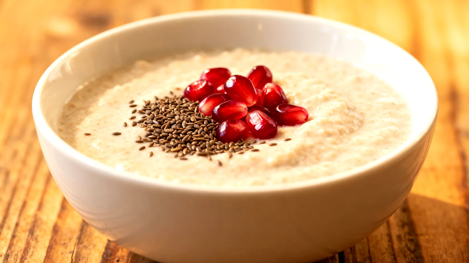 Während die ersten beiden Zutaten primär für Makronährstoffe sorgen, bringt der Granatapfel die entscheidende bioaktive Komponente ins Spiel. Seine Polyphenole, insbesondere Punicalagin und Ellagsäure, haben in Studien gezeigt, dass sie oxidativen Stress reduzieren und die Regeneration beschleunigen können. Bei Ausdauersportlern wurde beobachtet, dass Granatapfelsaft die Erholungszeit nach erschöpfenden Belastungen verkürzt. Die leuchtend roten Kerne liefern zudem einen frischen Kontrast zur cremigen Konsistenz des Puddings und tragen mit etwa 4 Gramm Ballaststoffen pro 100 Gramm zur Gesamtwirkung bei.