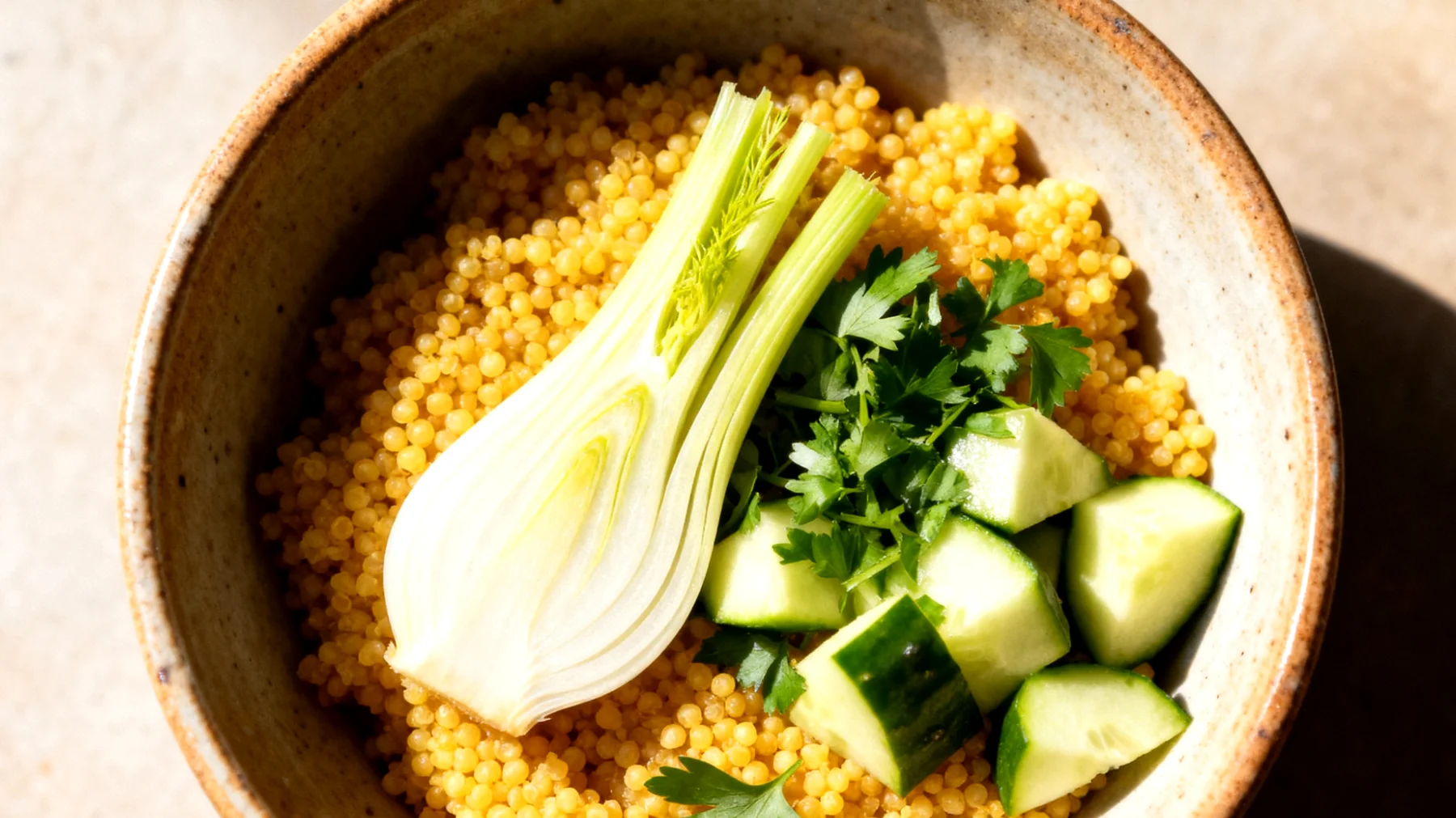 Die Zusammenstellung dieser vier Zutaten macht das Gericht besonders nährstoffreich. Während Hirse die mineralische Basis liefert und sättigt, ergänzen Fenchel, Gurke und Petersilie mit ihren unterschiedlichen Nährstoffprofilen die Mahlzeit auf verschiedenen Ebenen. Die niedrige Kaloriendichte bei hoher Nährstoffdichte macht den Brei ideal für eine Abendmahlzeit, die nicht belastet, aber trotzdem sättigt.